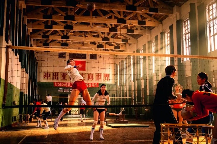 80年代训练环境艰苦,影片复刻了老女排的训练基地,地板上还有80年代的倒刺,姑娘们用最原始的方式拉伸、练力量、练单兵防守……
