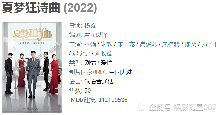目前从《夏梦狂诗曲》在某瓣显示的资料来看,该剧不出意外的话极可能会在2022年与大家正式见面(也算是指日可待了呢)。不知道大家对于此次张翰和朱一龙这2位男神的合作搭档是否期待呢?赶快在下方留下您宝贵的看法和意见吧。