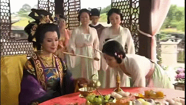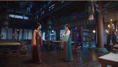 尚服局的投机二人组把制作好的袆衣送到杨妃那里,冠冕堂皇的摆在大厅,好巧不巧地唐太宗就到了,