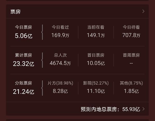 某票房平台预测更是给出了55.9亿的票房成绩,剑指中国票房第一的《战狼2》。